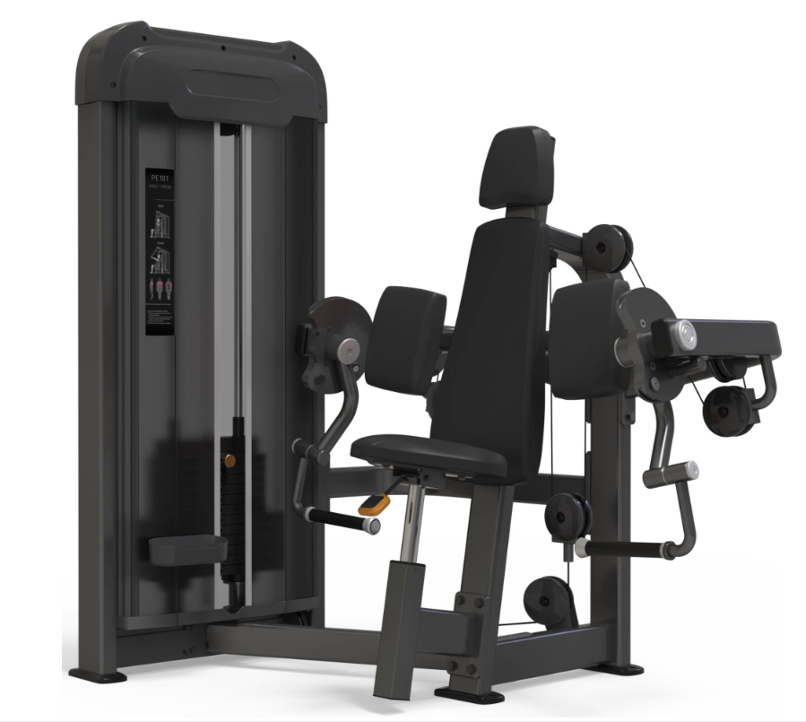 Рама тренажёра выполнена из круглого и прямоугольного стального профиля с толщиной стенки 3 мм — прочного и устойчивого к износу. Одинарный весовой стек массой 96 кг закрыт защитным кожухом, что делает занятия безопасными и снижает уровень шума. Сиденье регулируется по высоте, позволяя точно подстроиться под рост пользователя.