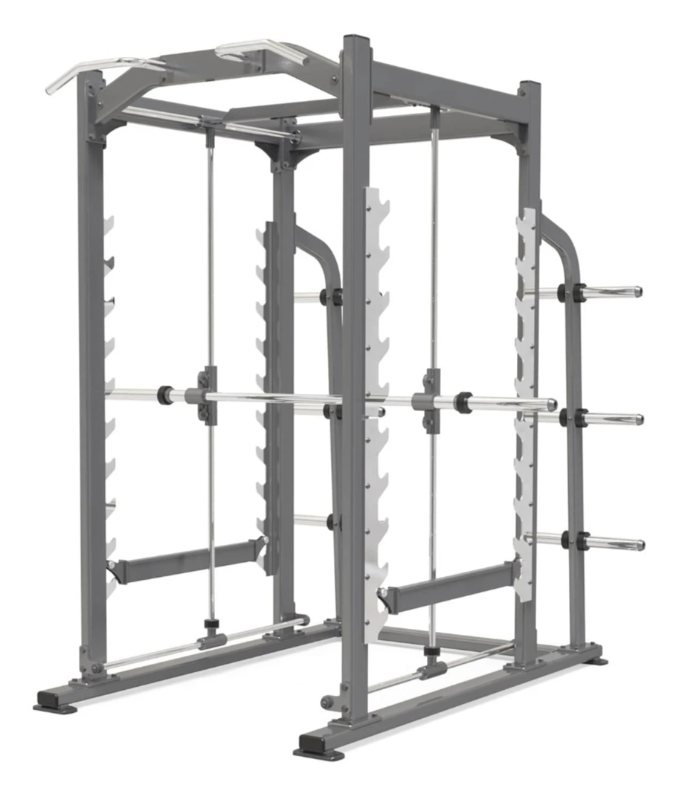 Каркас машины Смита выполнен из высокопрочной стали с толщиной стенки профиля 3 мм. Рама имеет круглое и прямоугольное сечение, что повышает её жёсткость и устойчивость к изгибу. Защитное порошковое покрытие в цвете «галактический серый» обеспечивает надёжную защиту от коррозии и царапин.