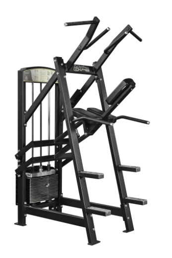 Особенность конструкции — грузоблочная система с весовым стеком 100 кг. Пользователь регулирует степень компенсации веса: чем больше вес выставленного блока, тем легче выполняется движение. Это даёт возможность постепенно снижать поддержку и наращивать собственную силу, соблюдая правильную технику и без перегрузки суставов.