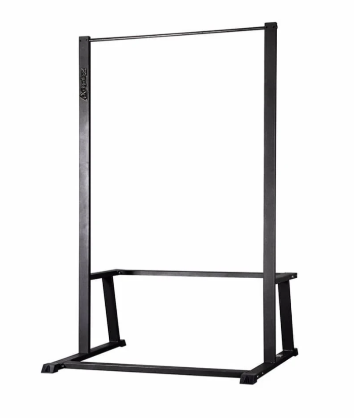 Конструкция выполнена из прочной стали с защитным покрытием, устойчивым к коррозии и механическим повреждениям. Напольная установка обеспечивает высокую устойчивость без необходимости крепления к стенам или потолку, что позволяет размещать турник в любой удобной зоне зала.