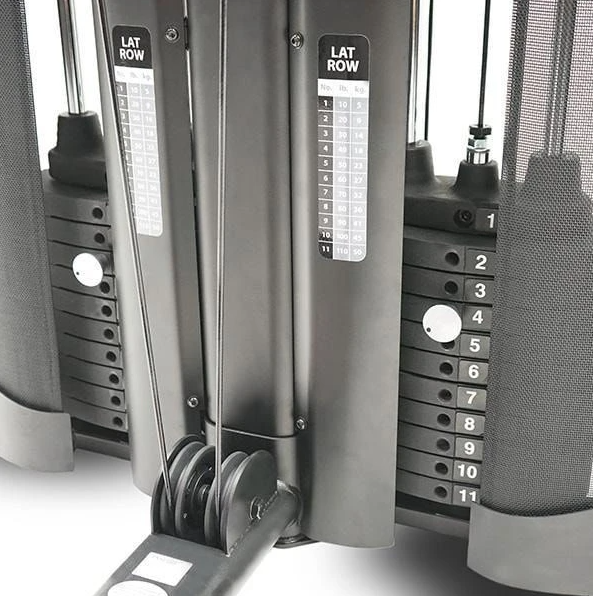 - Двойной весовой стек по 75 кг даёт возможность гибко подбирать нагрузку.