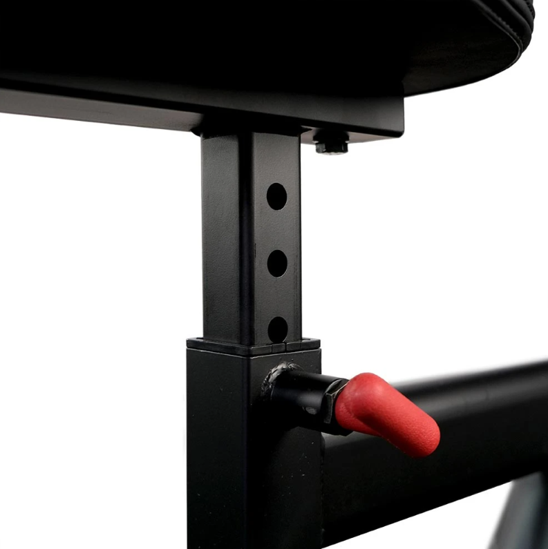 Сидение и валики регулируются под рост пользователя. Обивка выполнена из износостойкой экокожи, а двойная строчка повышает срок службы даже при интенсивном использовании.