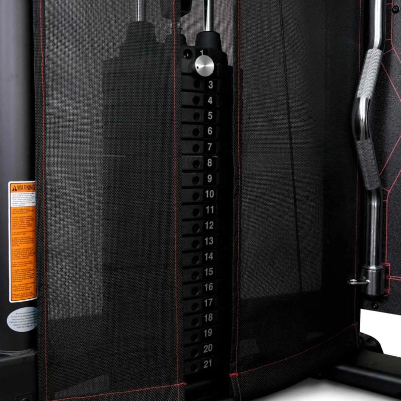 Ключевая особенность данной модели — это два независимых тяговых блока, которые обеспечивают равномерную нагрузку на каждую сторону тела и позволяют выполнять как симметричные, так и односторонние упражнения. Это особенно важно для реабилитационных целей или коррекции мышечных асимметрий.