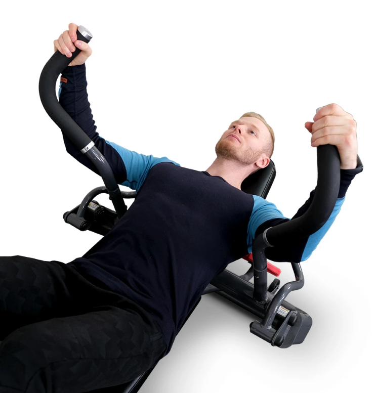 - Уникальная биомеханика – спинка поднимается вместе с пользователем, повышая безопасность и эффективность тренировки.