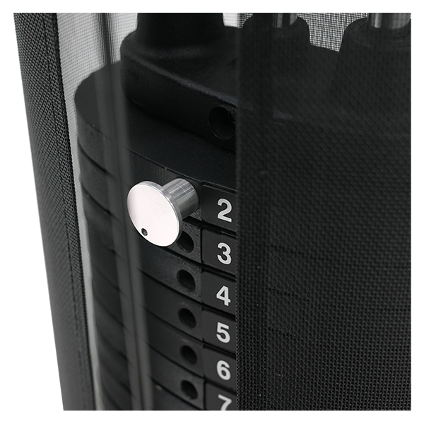 Весовой стек на 75 кг защищен кожухом, что обеспечивает безопасность во время тренировок. При необходимости нагрузку можно увеличить до 98 кг. В состав станции входят 6 тренировочных блоков: верхний тяговый блок, основную жимовую раму, срединный тяговый блок над спинкой, жимовые стрэп-рукояти, многоуровневый тренажер для разгибания ног и боковой тяговый блок.