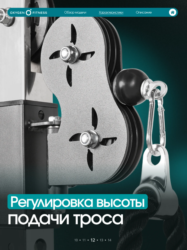 OXYGEN FITNESS VESTON - это мощный полукоммерческий кроссовер с полным функционалом для развития мышц верхней части тела, корпуса и рук. Тренажёр оснащён двумя независимыми грузоблоками и множеством дополнительных станций, что делает его универсальным решением для небольших залов, студий, фитнес-клубов и продвинутых домашних тренировочных зон. Конструкция рассчитана на интенсивное использование и высокие нагрузки: максимальный вес пользователя - 220 кг, максимальная нагрузка - 140 кг. Основа тренажёра — жёсткая рама прямоугольного профиля 70×50 мм с толщиной стенки 1,5 мм, обеспечивающая идеальную устойчивость и долговечность. В комплексе используются два грузоблока по 70 кг каждый (12+12 плит), выполненные из прочной композитной плиты. Вес одной плиты — 5,7 кг. Передача нагрузки осуществляется через стальные тросы диаметром 6 мм — надёжные, износостойкие и рассчитанные на долгий срок службы. Габариты в рабочем положении: • 130 × 295 × 230 см. Вес нетто — 244 кг. VESTON предлагает широкий диапазон тренировок за счёт продуманной конструкции и прикладных аксессуаров: • Кроссовер с регулируемыми рычагами (8 уровней по высоте) — упражнения на грудные, плечи, спину, руки и корпус. • Многофункциональный турник — подтягивания разными хватами, тренировка спины и мышц кора. • Брусья с регулировкой по высоте (15 уровней) — проработка трицепса, грудных и стабилизаторов. • Многофункциональная рычажная тяга — вариативная работа на широчайшие и мышцы спины. • Канат для трицепса — точечная изоляция рук. Дополнительно предусмотрены: • 2 пружинных замка, • накопители под диски Ø50 мм для удобной организации пространства.