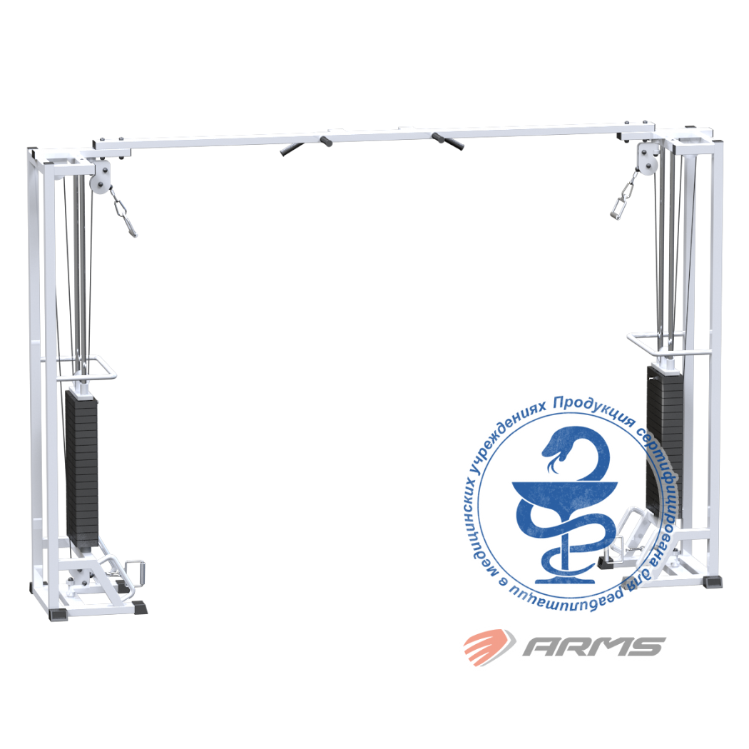 - Грузоблочный стек тренажера состоит из металлических обрезиненных плит весом по 5кг, и хромированных направляющих. Изменение нагрузки происходит при помощи металлической иглы(фиксатора). Для приведения в движение грузов используется трос 5 мм в пвх оплетке с усилием на разрыв 500 кг с максимальной нагрузкой – 800кг.