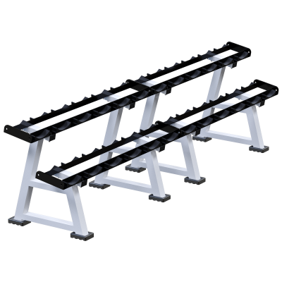 Гантельная стойка Sabirgym SG102 предназначена для хранения до 12 пар гантелей. Двухъярусная конструкция обеспечивает удобный доступ к инвентарю и позволяет эффективно организовать силовую зону при среднем и высоком объеме гантелей.